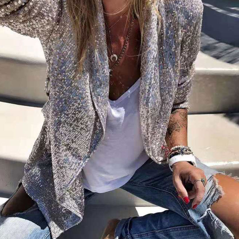 Blazer À Paillettes Manches Longues Polyester Pour Femme Veste Élégante Mode Pri