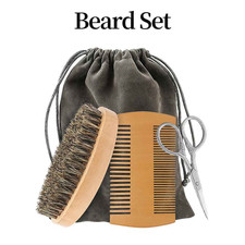 【Caractéristique】Ensemble de soins de moustache avec brosse à barbe portable, tondeuse de voyage, peigne double face en bois et pochette à cordon. 1 brosse à barbe. Vous n'avez besoin que d'une minute.