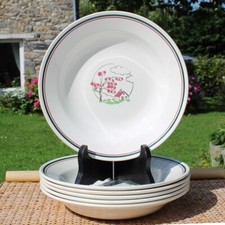 Assiettes avec modèles de fleurs différents. bords rouge bleu et jaune. Bien regarder les photos svp.
