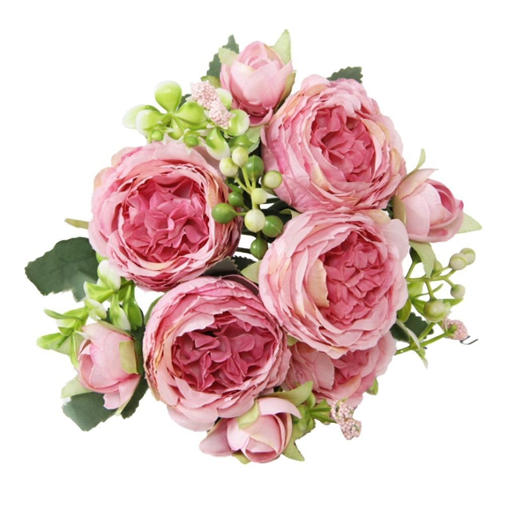 Un bouquet de fleurs artificielles. Matériau pour durable : Fabriquées en tissu soie et plastique ces roses artificielles sont pour un matériel pour durable et n'ont pas besoin d'être arrosées ou exposées au soleil pour maintenir leur beauté.