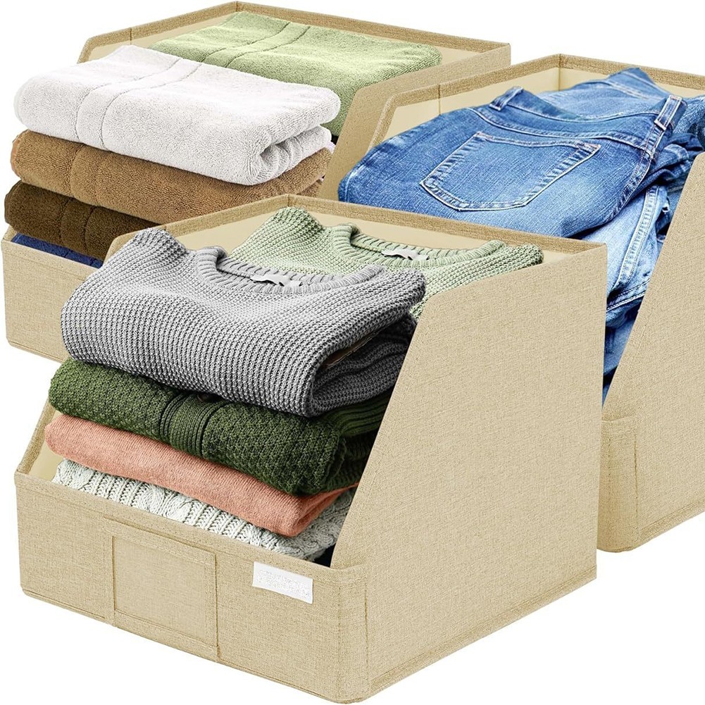 Bacs de rangement en tissu 3 pièces avec façade ouverte pour un accès facile