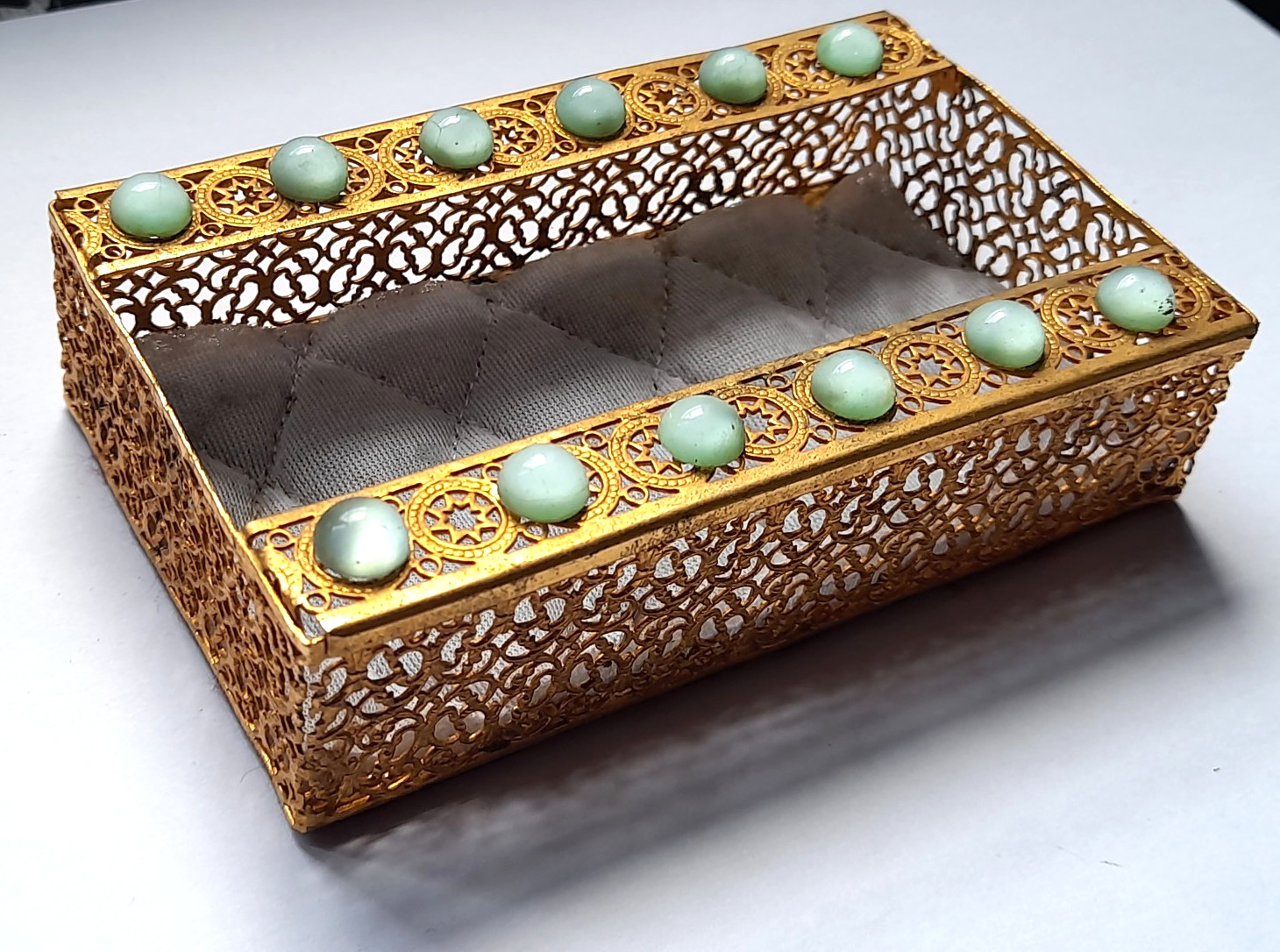 ancienne boite à bijoux vide poche vintage métal doré vers 1950-60
