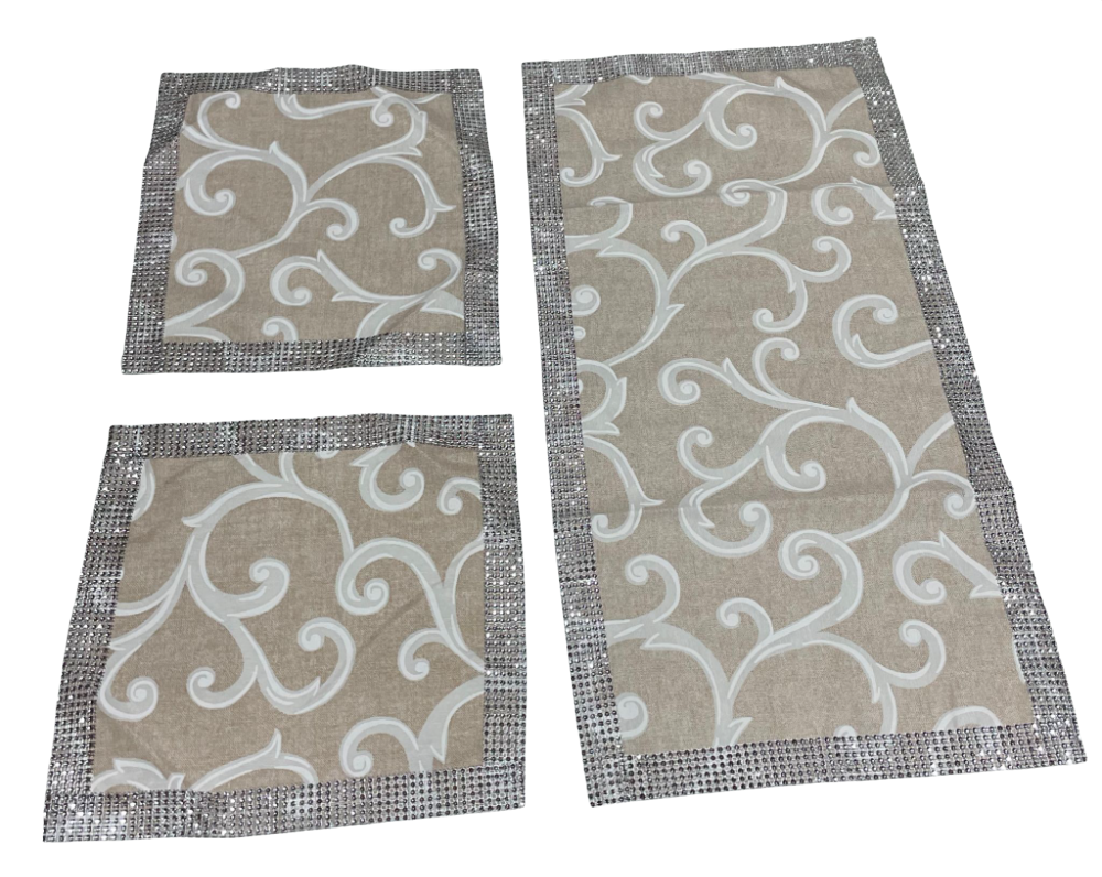 Le tris centrini complet avec bande swarovski. 2 centres (35 x 35 cm). 1 coureur (65 x 35 cm).