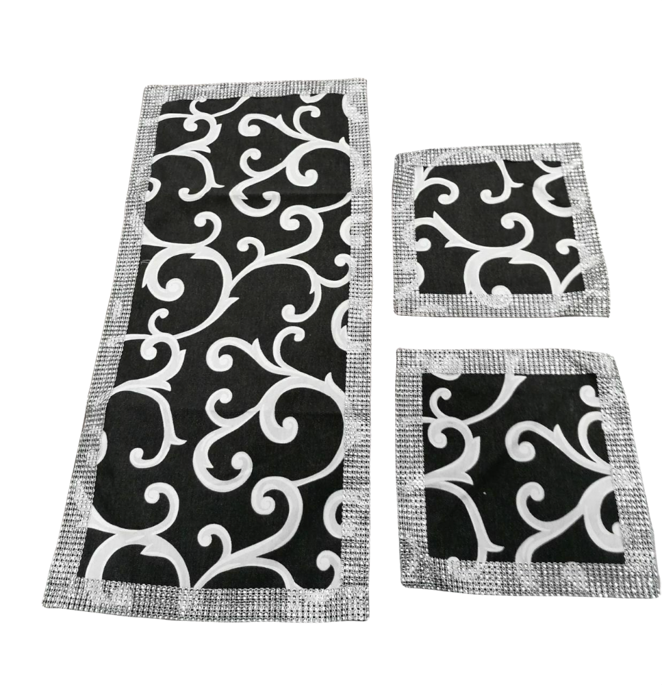 Le tris centrini complet avec bande swarovski. 2 centres (35 x 35 cm). 1 coureur (65 x 35 cm).