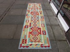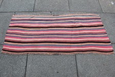 Tapis Kilim Vintage Traditionnel Fait Main Oriental Orange Bleu Laine 200x160cm