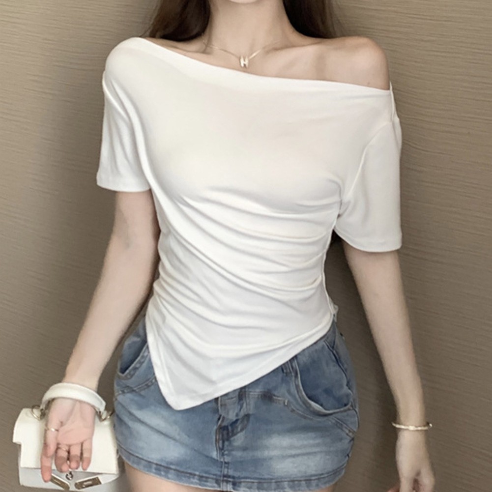 T shirt femme manches courtes épaules dénudées couleur unie pour style été