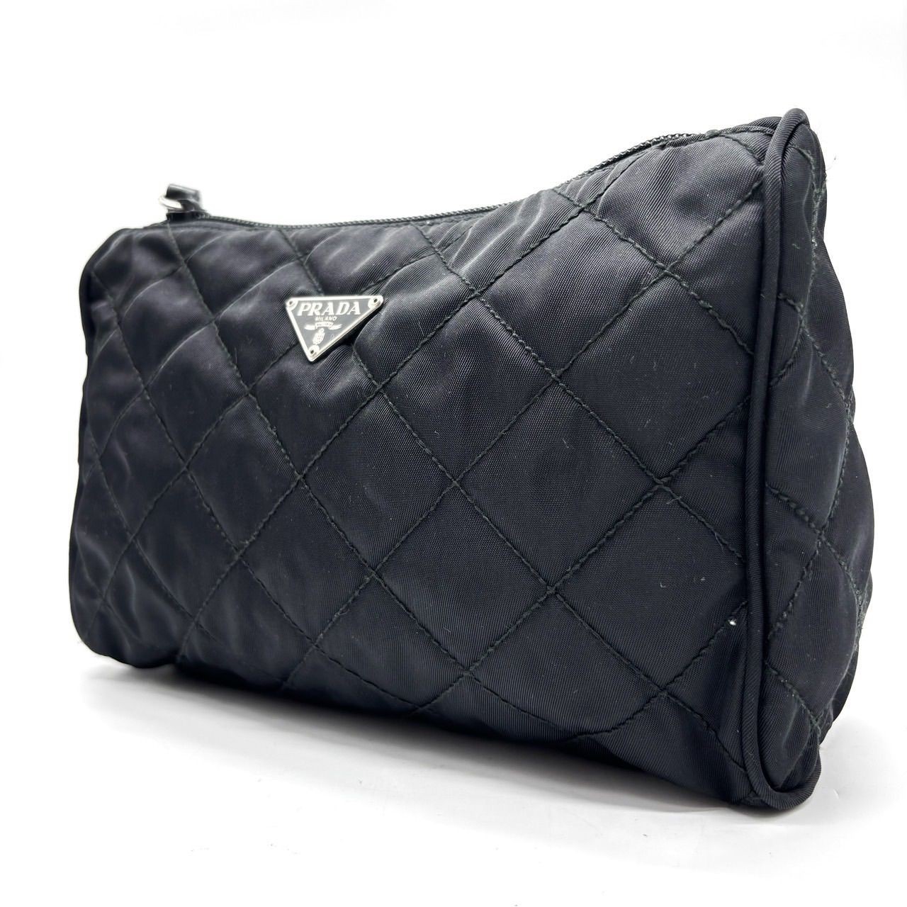 Sac à main en nylon PRADA Tessuto noir matelassé logo triangle argent...