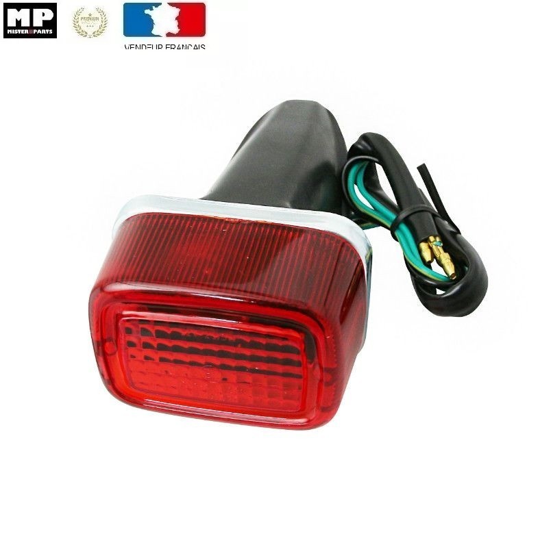 Feu arrière retro compatible Yamaha Xt 500, TY 250 125, 125 DTMX, DT. Feu Arrière Rouge. Feu rouge arrière complet adaptable, a fixer sur votre dosseret ou garde boue arrière. Support de fixation du feu arrière en caoutchouc souple, absorbe les vibrations.