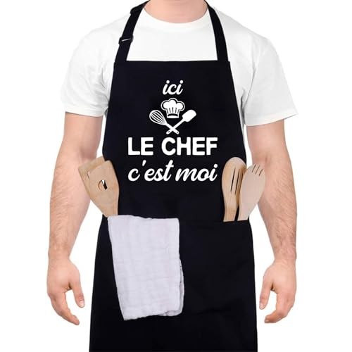 Tablier de Cuisine pour Homme, ici LE CHEF c’est moi Tabliers de Cuisine Étan...