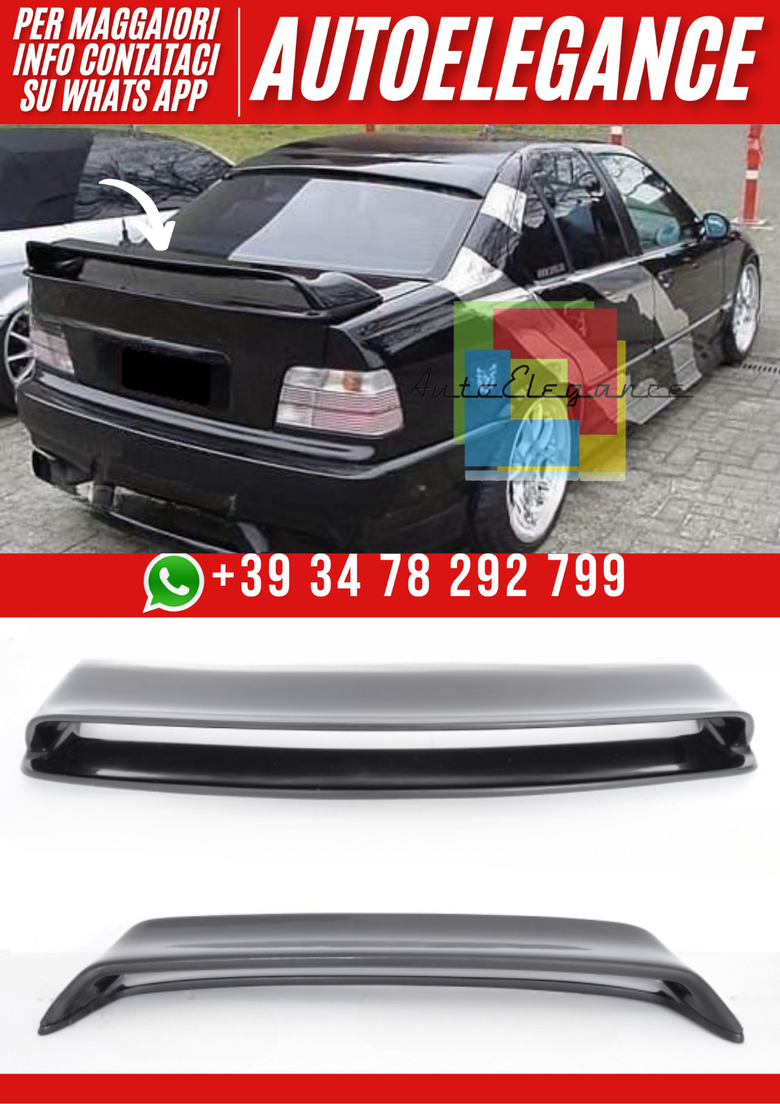 Avez-vous un atelier ? Avez-vous besoin de grandes quantités ? Contactez-nous pour avoir une ligne directe et découvrez toutes nos offres pratiques! - L'installation doit être effectuée dans des ateliers de carrosserie spécialisés (nous pouvons vous recommander le centre affilié le plus proche de vous) - Si vous avez des doutes ou des questions, contactez-nous, nous serons heureux de vous aider Paire de spoilers arrière compatibles avec BMW Serie Sedan 4 Doors (Production 1990–2000). L'ensemble comprend un becquet de lunette arrière et un pour le hayon, offrant un look sportif et distinctif à l'arrière du véhicule. Composé de 2 éléments (Spoiler supérieur + hayon de spoiler) Ensemble simple avec de la colle ou du ruban adhésif à double faces (non inclus) Assemblage recommandé lors d'atelie.
