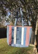 sac cabas en Jean recyclé fait main neuf Doublure fleurie noire et blanche, plus poche intérieure Avec 2 poches extérieures Voir détail des photos Remise en main propre ou envoi soigné