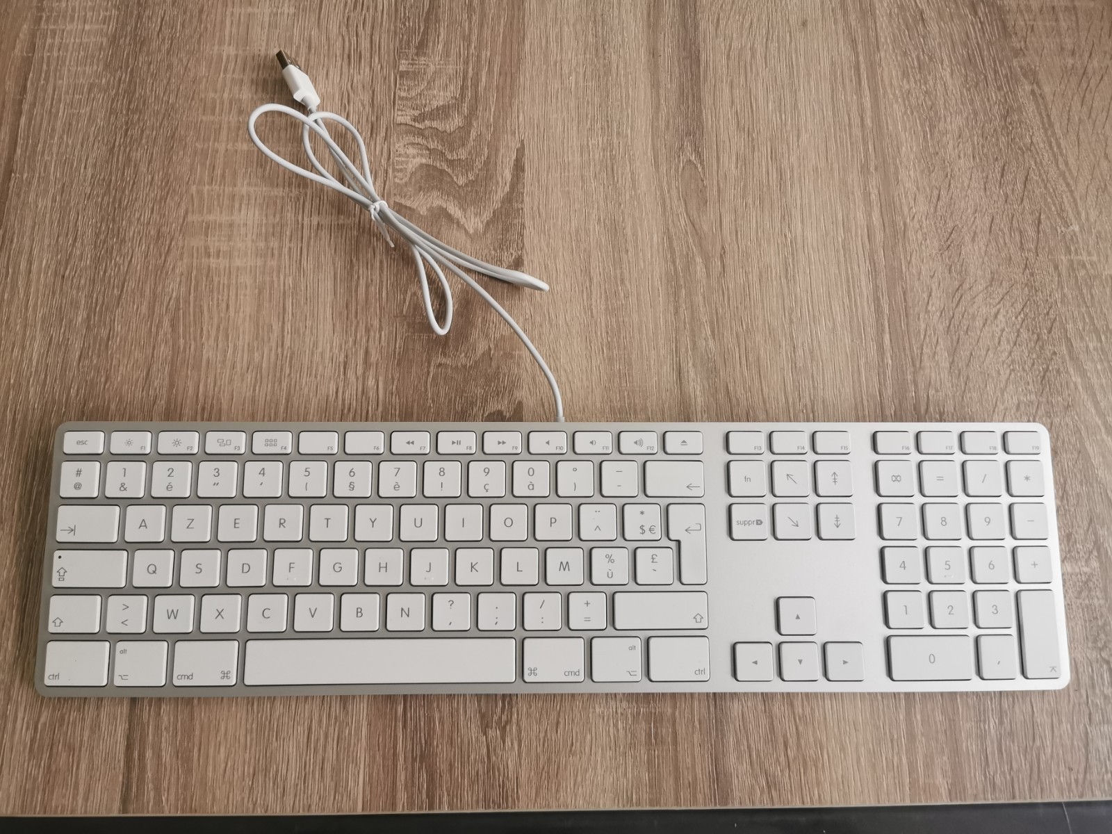 Clavier Apple A1243 - USB filaire avec pavé numérique Connexion USB filaire. Clavier Apple en aluminium. 2 ports USB sur le clavier. Compatible Mac et PC.