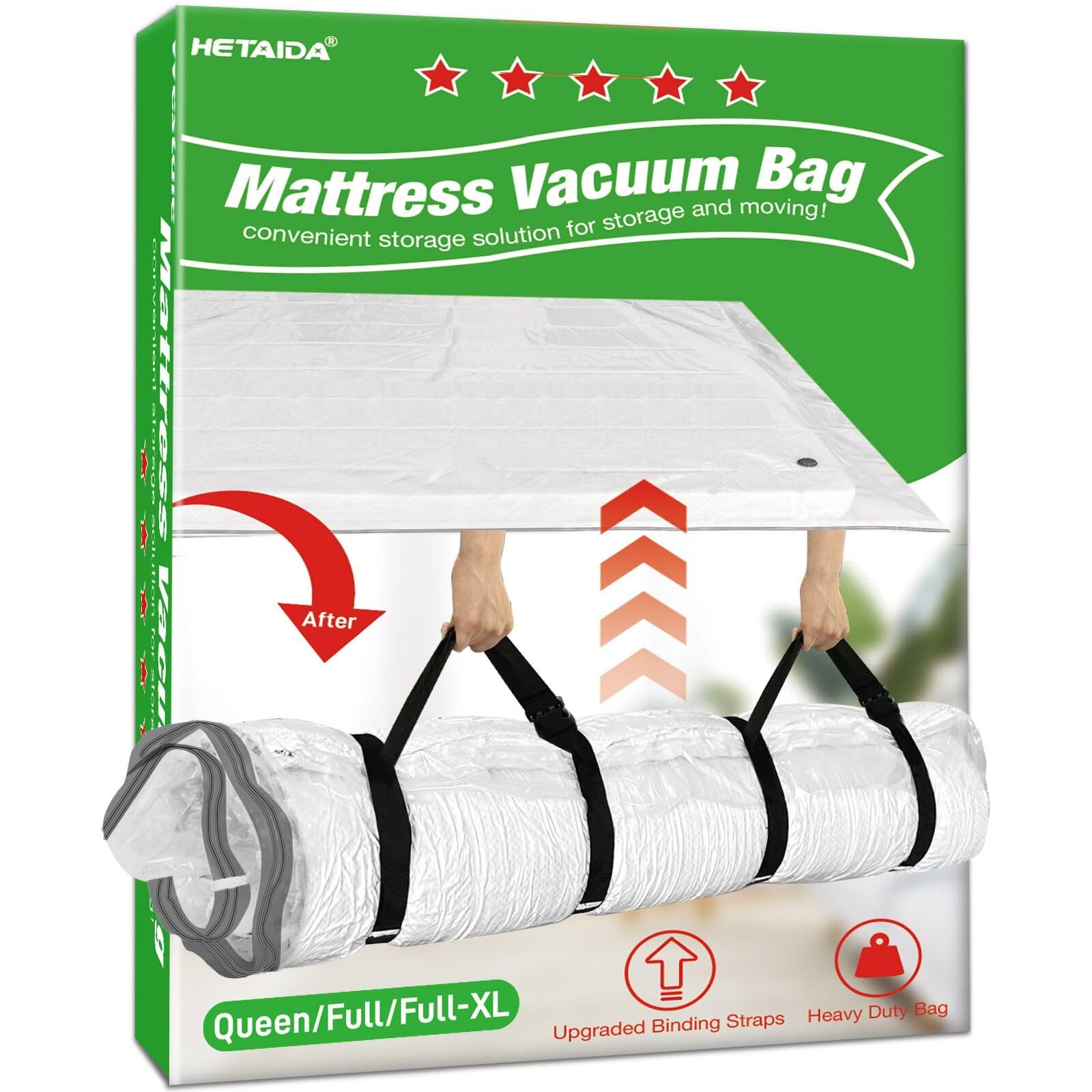 ●Sacs de rangement sous vide peu encombrants : le sac de compression pour matelas peut réduire le volume de votre matelas de plus de 80 %, ce qui permet d'économiser de l'espace précieux. Sac de rangement avec sangles : les sacs à matelas sous vide pour déménagement comprennent 4 sangles d'épaule réglables qui améliorent le confort, facilitent la manipulation et vous permettent d'économiser beaucoup d'efforts. Protection d'étanchéité super forte : le protège-matelas dispose d'un double joint à fermeture éclair est conçu pour évacuer tout l'air dans le processus de vide et assurer une compression durable. tandis que le clip de maintien garantit que le sac reste bien fermé, ce qui empêche le sac de se détacher.