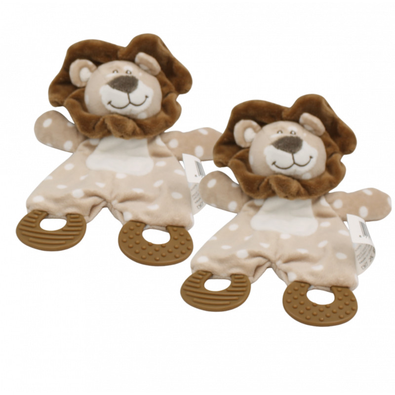 Doudou plat lion dentition marron beige ZDT ACTION TRADING lot de 2 - 26361