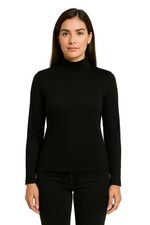 pull fin ajusté noir uni dos semi nu croisé col rond manches longues taille S