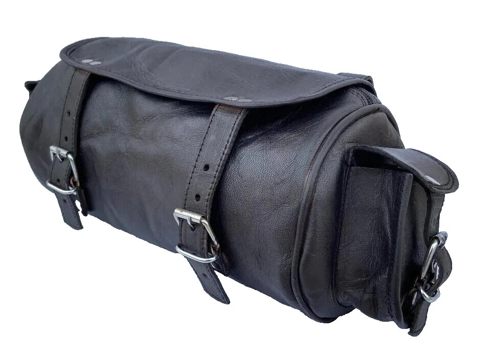 Sac à outils de moto en cuir de chèvre véritable noir, sacoche de selle Vintage faite à la main.