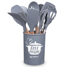 Ensemble d'ustensiles de cuisine avec manche en bois en silicone.
