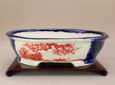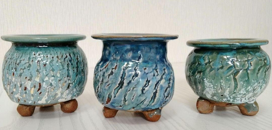 Pot à bonsaï japonais émaillé vert et bleu lot de 3 jardinières à bord rond φ...