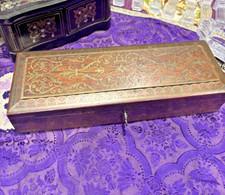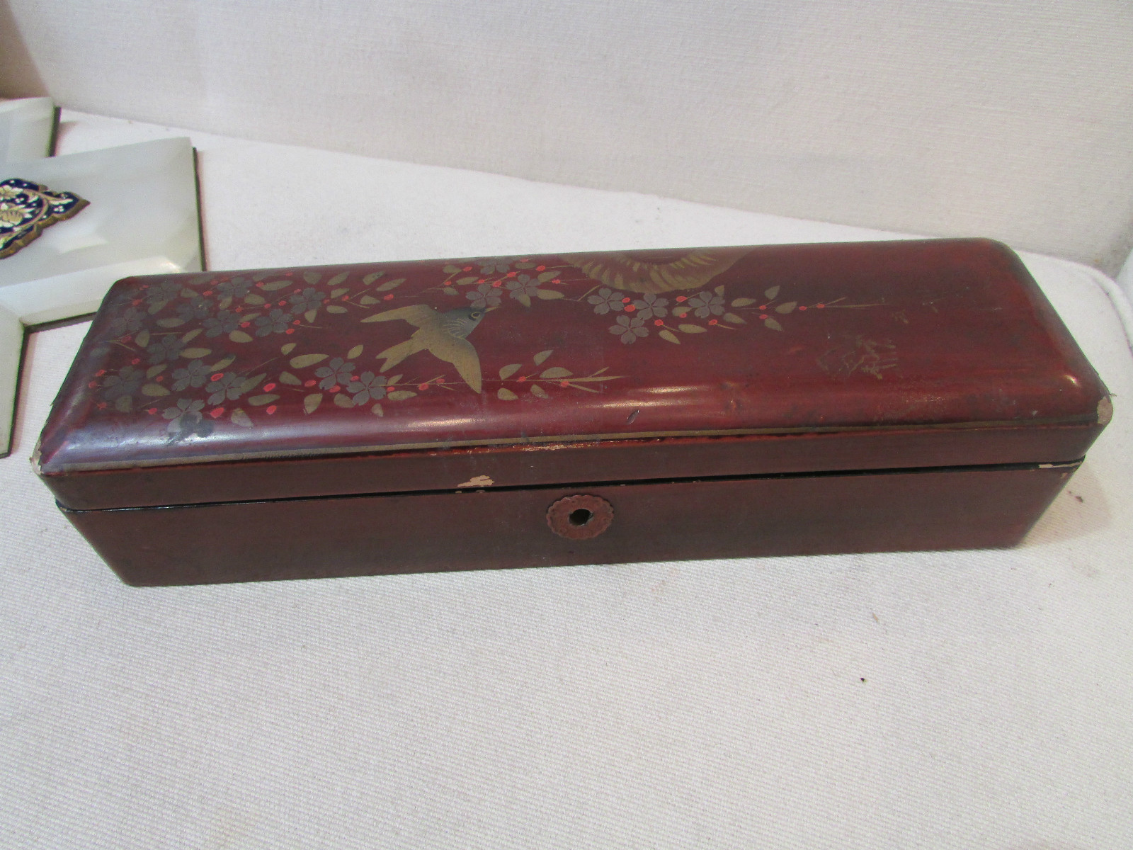 ancienne grande boite coffret a gants en laque chine japon decor floral oiseau