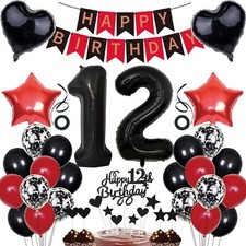 ●Décoration de 12e anniversaire noir argenté : comprend des ballons en aluminium de 81 cm numéro « 12 », 1 guirlande joyeux anniversaire, 10 ballons en latex, 10 ballons confettis, 2 ballons en aluminium étoile de 45,7 cm, 2 ballons en aluminium cœur de 45,7 cm, 6 décorations à suspendre, 1 x rubans de ballon. Décorations de fête parfaites : un excellent cadeau pour décorer la fête d'anniversaire de votre garçon ou fille, créer un monde incroyable et lui laisser des souvenirs inoubliables. Ballons de haute qualité : ballons en latex et ballons en aluminium de haute qualité, non toxiques et sans danger. Ce matériau a un lustre métallique, beau, écologique et réutilisable.