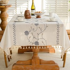 ●Matériau : En coton et en lin, le tissu est épais et confortable, respirant et se drape naturellement. La technologie avancée et les colorants garantissent qu'il n'est pas facile à décolorer. La nappe est simple et exquise, offrant une meilleure protection pour votre table à manger. Properties : La surface de la nappe utilise un jacquard stéréo 3D avancé, vous n'avez donc pas à vous soucier de l'usure ou de la décoloration des motifs. Les pompons beiges rendent cette nappe vintage et élégante. Multiples applications : Convient à la plupart des tables d'intérieur et d'extérieur, telles que : Cuisine, salle à manger, patio, jardin, salle d'activités familiales, café, fête ; ou encore, chiffon de pique-nique, chiffon décoratif.