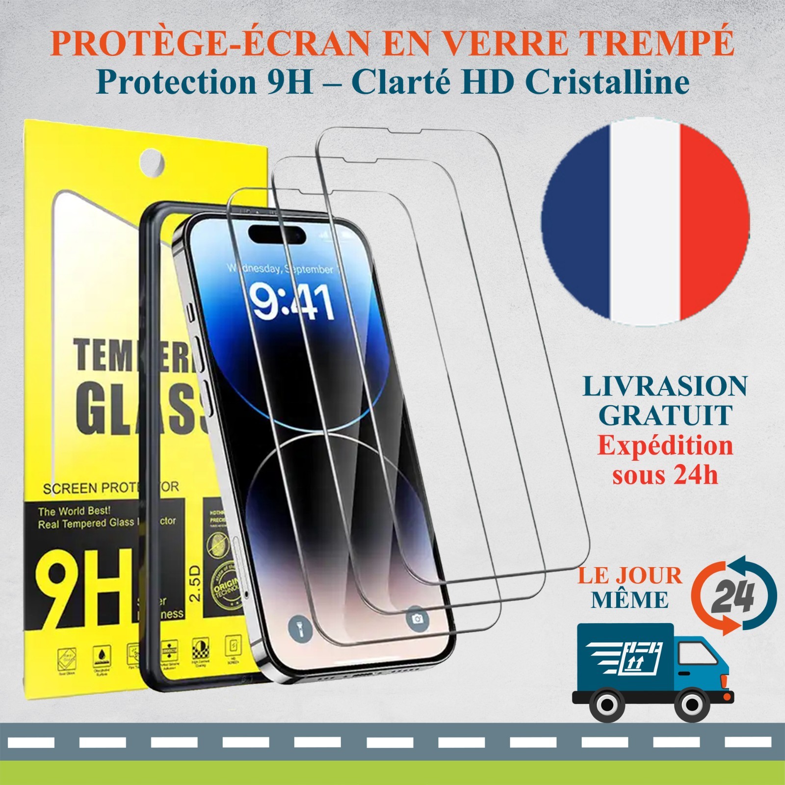 Verre trempé 9H : protection anti-rayures, anti-éclats & antichoc. Verre trempé Premium pour iPhone 13 / 13 Pro – HD Clair & Anti-Rayures. 1x Protecteur en verre trempé + Kit de nettoyage. 3x Protecteurs en verre trempé + Kits de nettoyage.