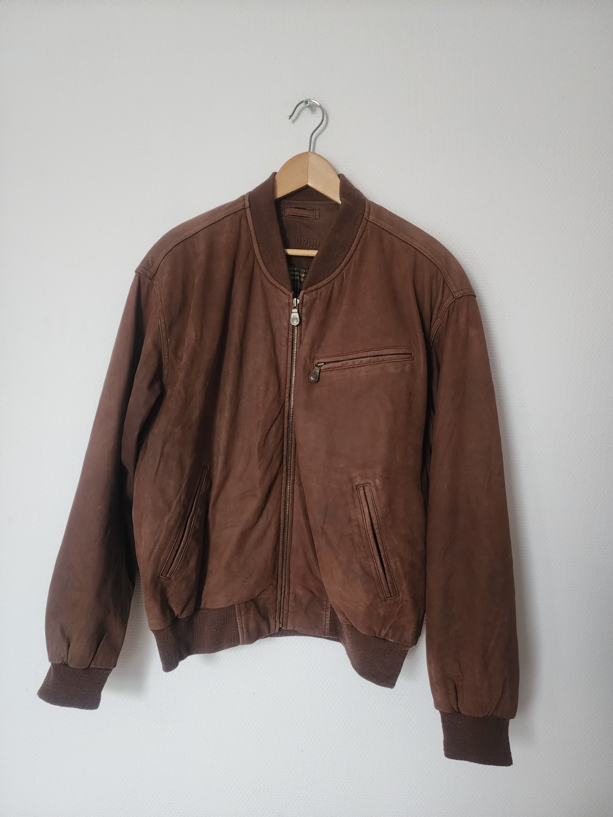 VESTE/ Blouson Aviateur en Cuir Marron TRAPPER. Taille XL (voir mesures)