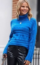 Pull à col roulé en maille torsadée pour homme, en laine mélangée bleue