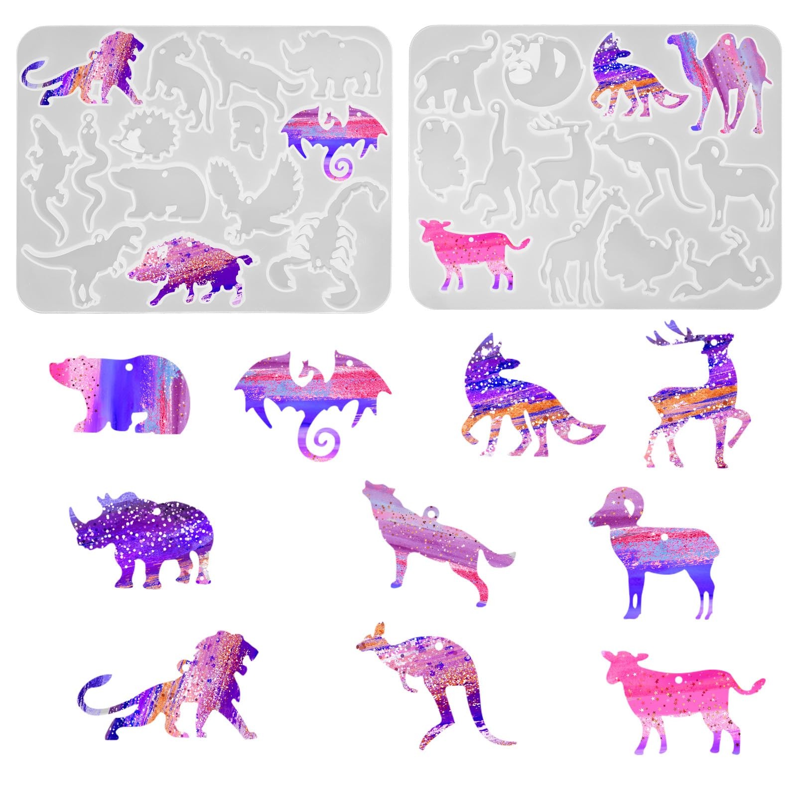 ●Contenu de l'emballage: vous recevrez 2 morceaux de moules de résine de forme d'animaux dans l'emballage, riches formes d'animaux pour fabriquer vos propres bijoux uniques. Grand matériau: ces moules en résine sont en silicone de grande qualité, ce qui les rend fiables, robustes, réutilisables, avec une surface lisse, facile à dés-mourir et à nettoyer, pas facile à casser, à déformer ou à endommager. Vous pouvez les acheter en toute confiance. Comment utiliser: ces moules en résine de forme d'animaux sont conçus pour une utilisation facile, idéale pour fabriquer une variété de bijoux, tels que des boucles d'oreilles, des colliers, des clés, des pendentifs, etc.