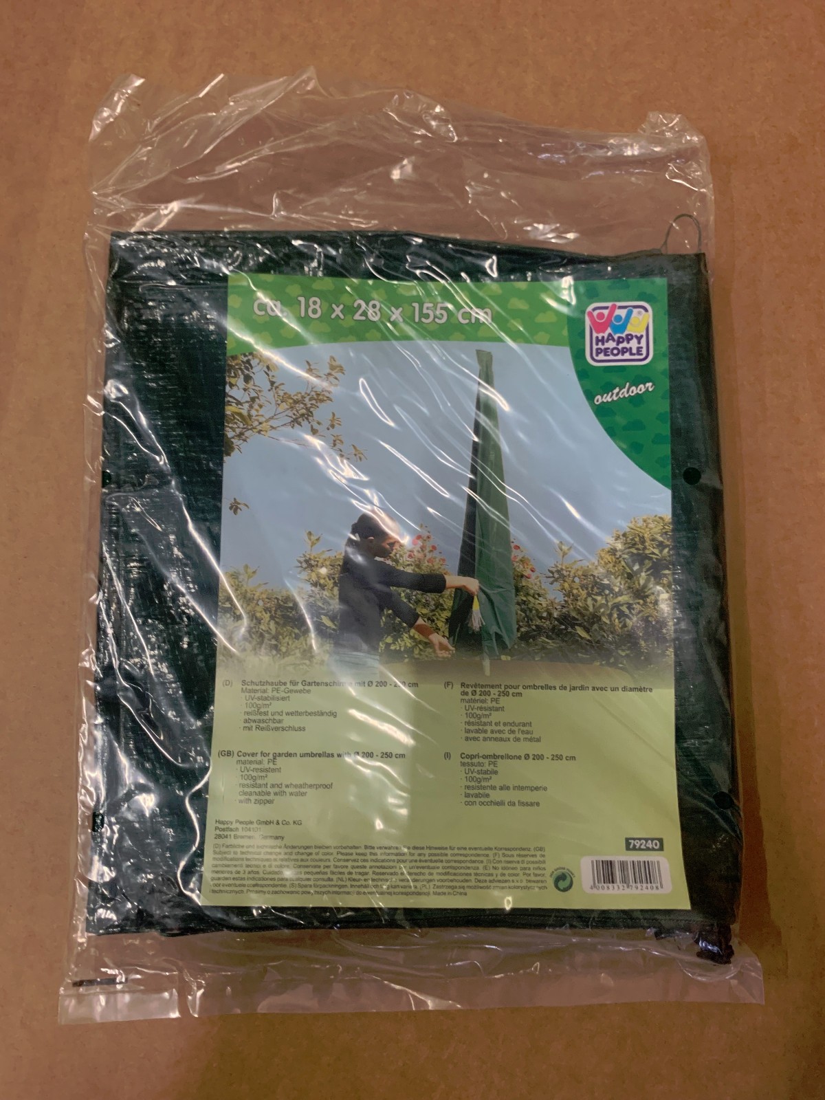 Housse de protection VERTE pour parasol avec tirette Ø2m à 250cm 79240