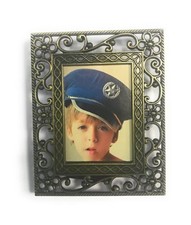 Cadre photo rectangulaire en métal argenté a décor de noeud et de fleurs nº1