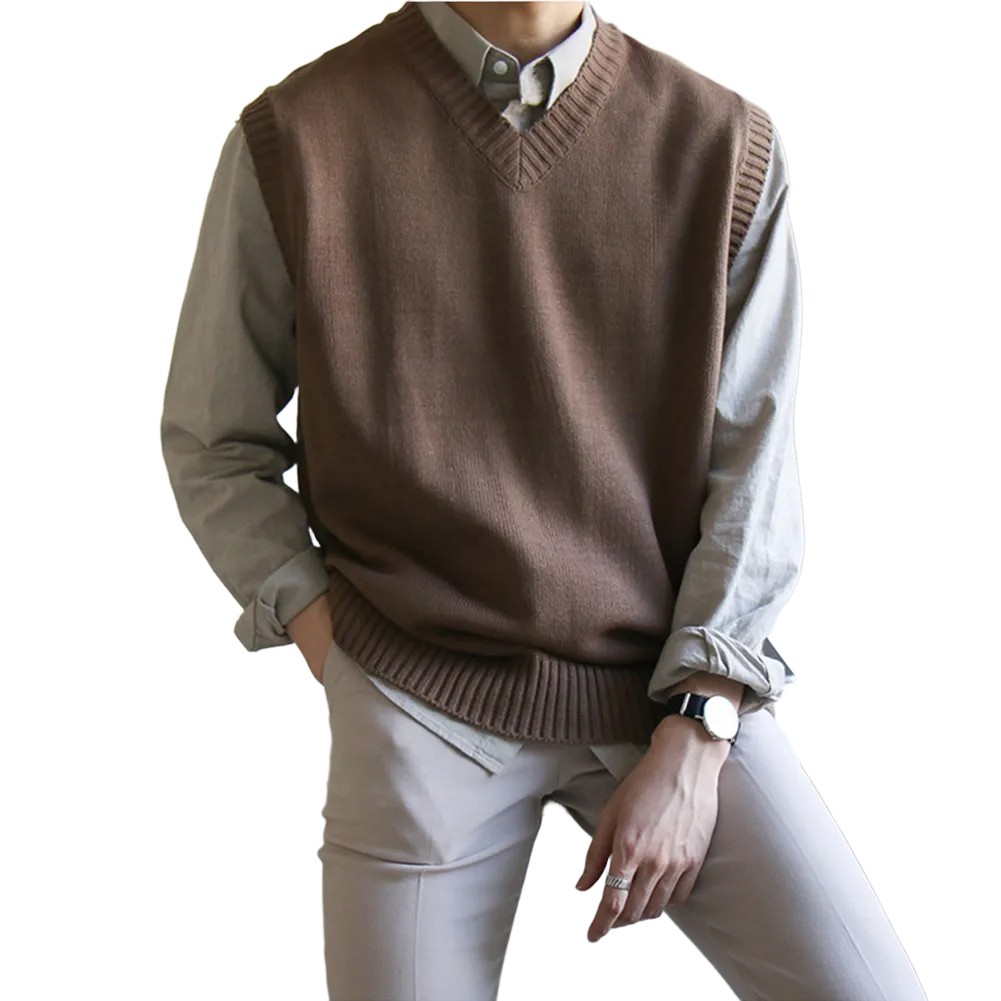 Gilet pull tricoté homme sans manches col v coupe ample style coréen débardeu