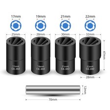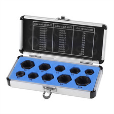1 x jeu de dissolvant de boulons à écrou à percussion (13 pièces). Outils applicables : Tournevis carré de 3/8" à utiliser avec des cliquets à main, des clés à chocs et des cliquets pneumatiques, kit d'extraction avec des plats hexagonaux pour une utilisation avec des clés plates, des pinces,clés à molette et douilles.