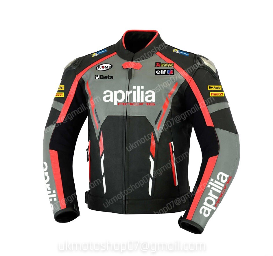Tout Neuf "APRILIA"Veste en Cuir de Moto. Veste Tableau des Tailles. Cuir génuine Top Grain Cuir doux 1,1-1,3 mm. Poignets et boutons-pression d'origine YKK. 5 armures approuvées CE. Point de fil Kevlar.