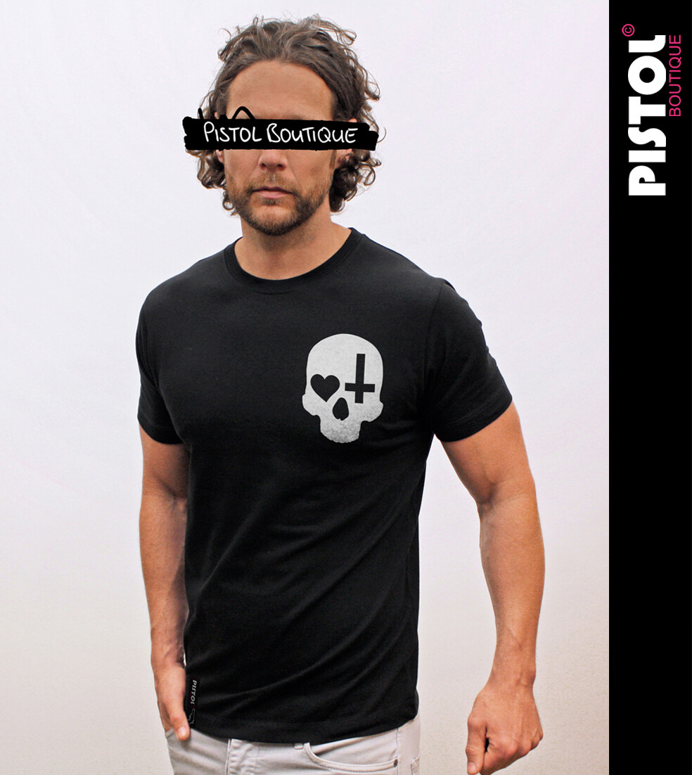 Pistol Boutique T-Shirt Noir Standard À Col Rond Skull Coeur Croix Pour Homme