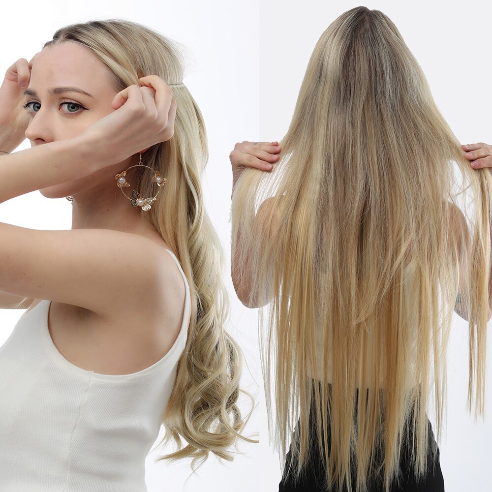 Extension de cheveux synthétiques blond 55 cm, longue et épaisse corde Invisible