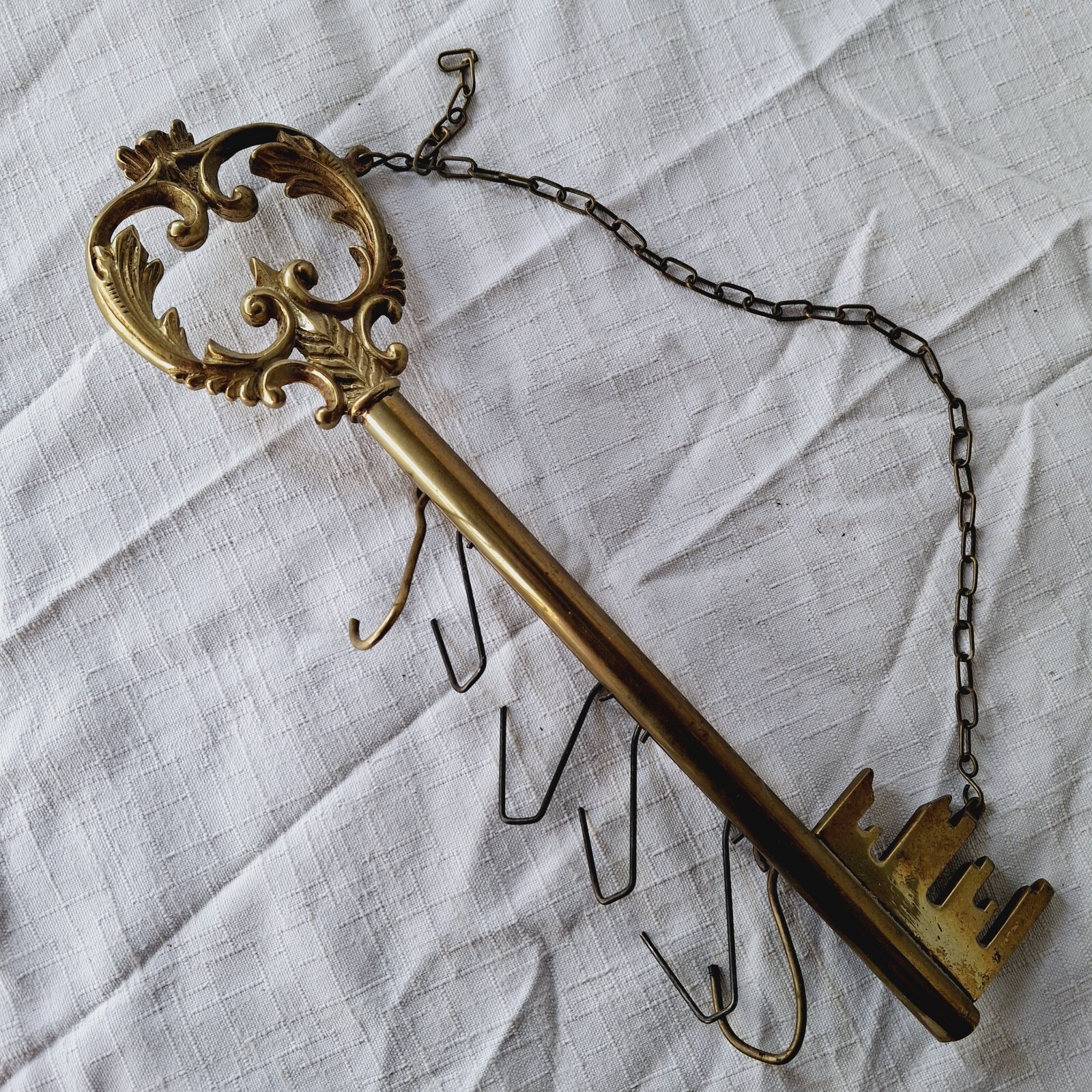Porte clé mural Vintage en laiton clef design 1970