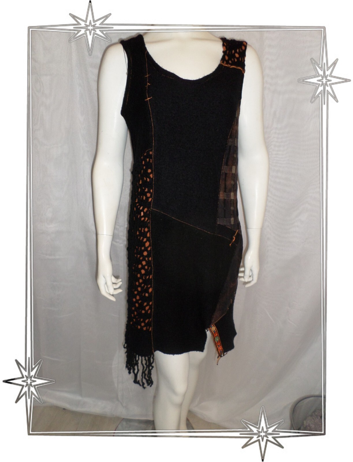 Ⓡ - Robe Chasuble Noire Marron Orange Multi Matières Filles des Sable T M / L
