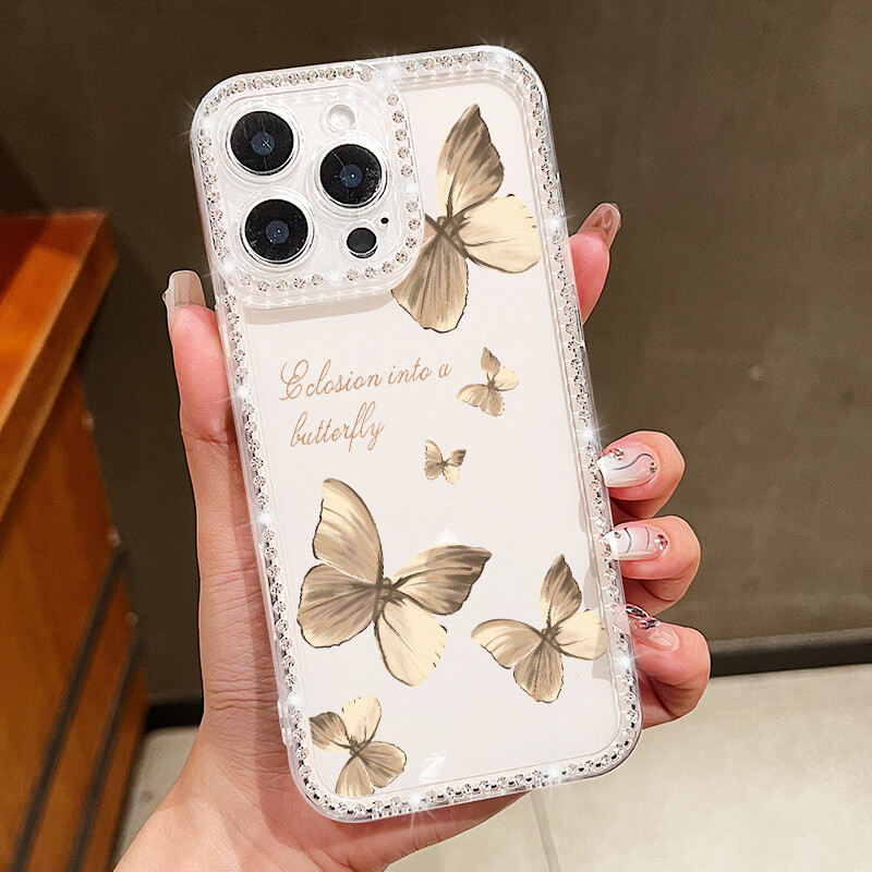 Etui Clear Diamond Butterfly TPU pour iPhone 16 Pro Max 16e 15 14 13 12 11 Cover