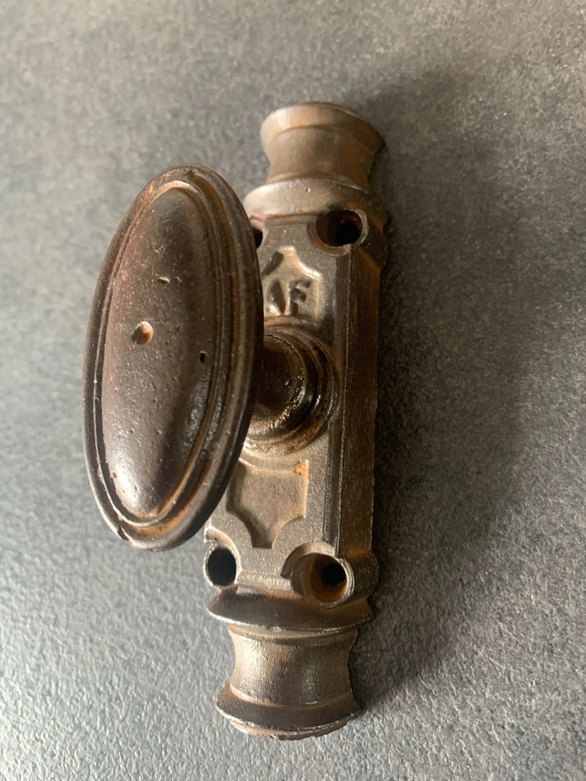 Ancienne Poignée Crémones en Fonte Pour tringle 15/18 mm. Longueur du Boitiers en Fonte environ 16 cm.