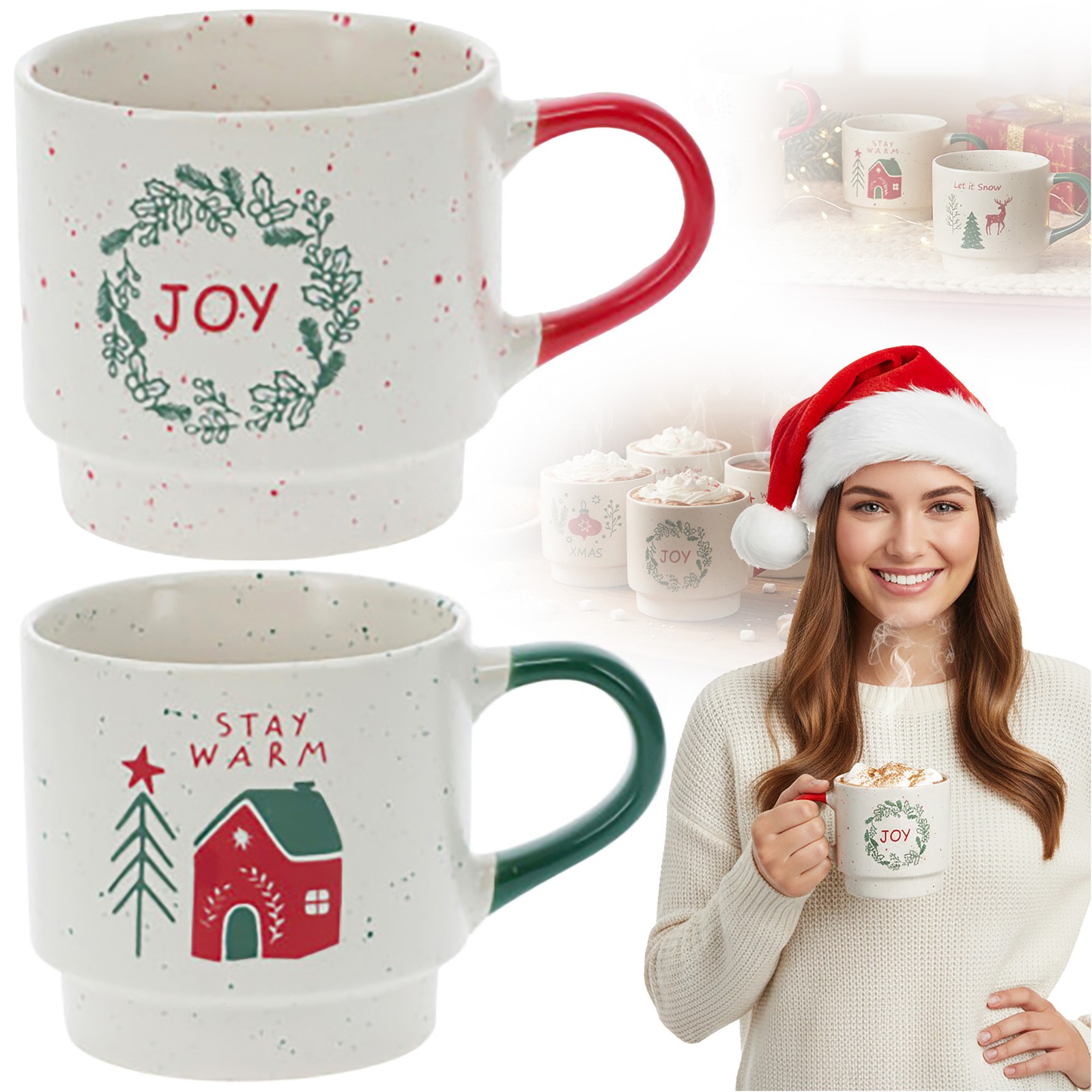 Il est disponible en quatre modèles festifs - y compris la varianteJOY, qui séduit par sa simplicité et son élégance. Capacité : 350 ml. Décorée en blanc classique et dotée d'un délicat motif de Noël, elle allie simplicité, chaleur et design intemporel.
