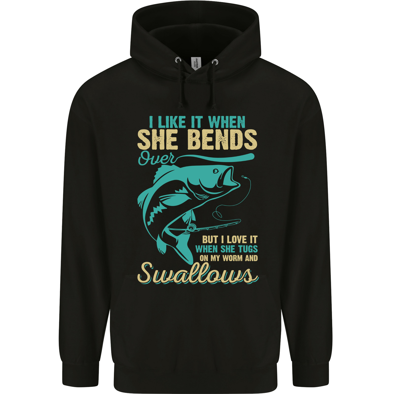 Elle Se Penche Sur Un Sweat À Capuche Drôle De Pêche Pour Enfants