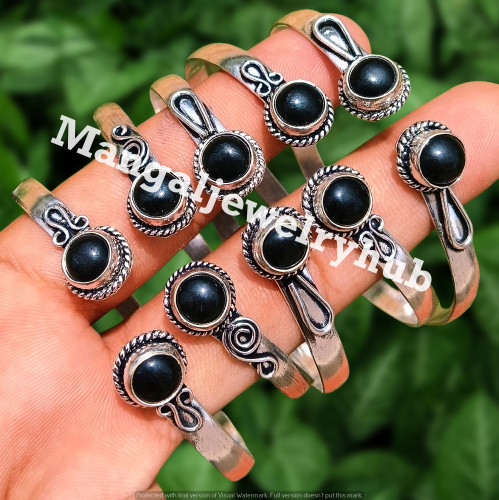 Ajoutez une touche d'élégance audacieuse à votre collection de bijoux ou à votre inventaire professionnel avec cesBracelets de manchette en pierre précieuse en onyx noir coupe ronde créés en laboratoire.