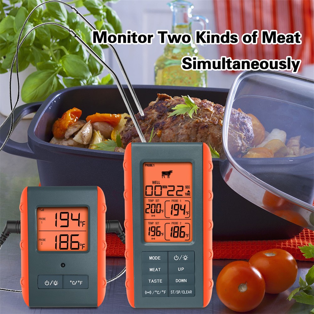 Thermomètre à viande digital sans fil pour four BBQ Grill Smoker 2 sondes