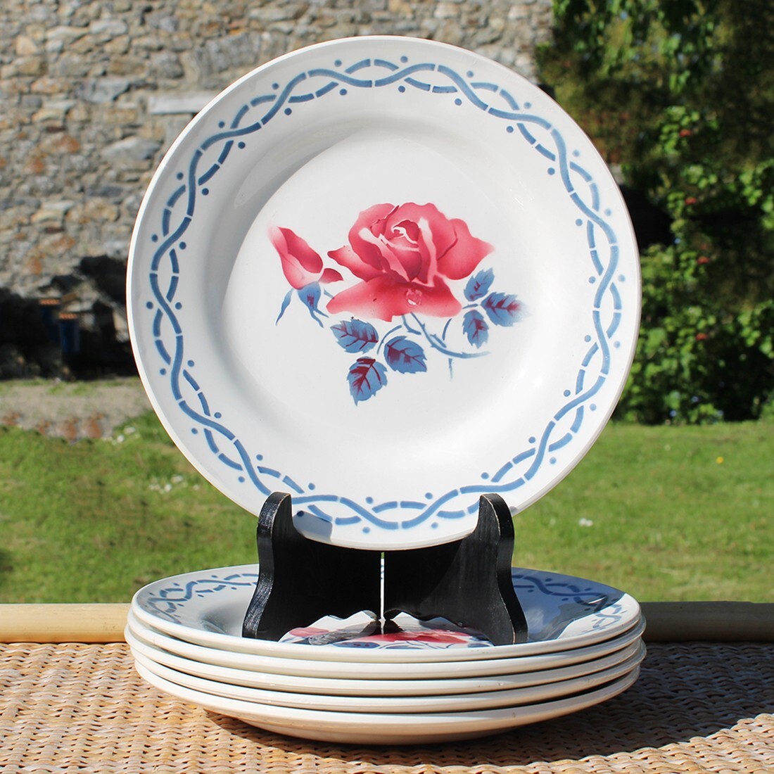 Ensemble de 6 assiettes plates anciennes Digoin Sarreguemines modèle Janine