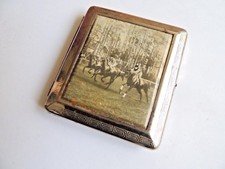 Ancien étui à cigarettes Décor Rocaille De Jeune Homme en métal argenté