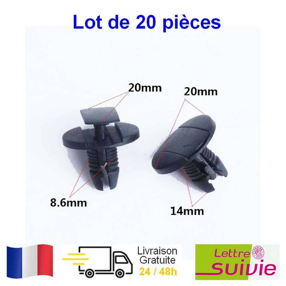 Lot de 20 agrafes rivet en plastique pour Pare-boue Pare-choc. PEUGEOT: 107 206 207 307 308 406 407 607 807 1007. EXPERT PARTNER BIPPER.