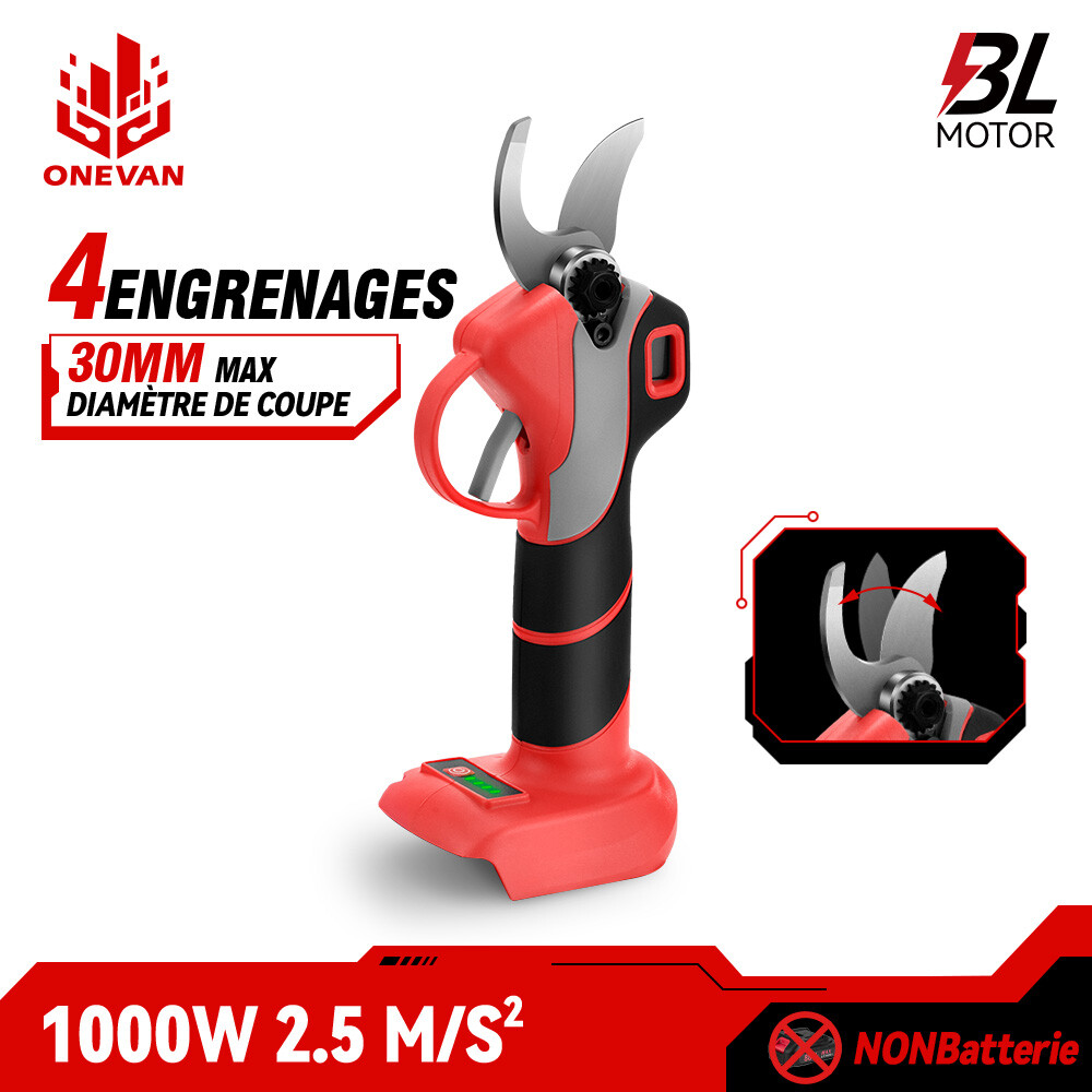 Nom : cisaille électrique. Moteur sans balais, forte puissance, vitesse de coupe rapide, améliore l'efficacité. Diamètre de coupe maximum : 30 mm. ID de la batterie : FR034229_06K9LR. Utilisation flexible, facile à tourner, sûr et fiable, facile à entretenir, pratique pour remplacer la batterie et fonctionner.