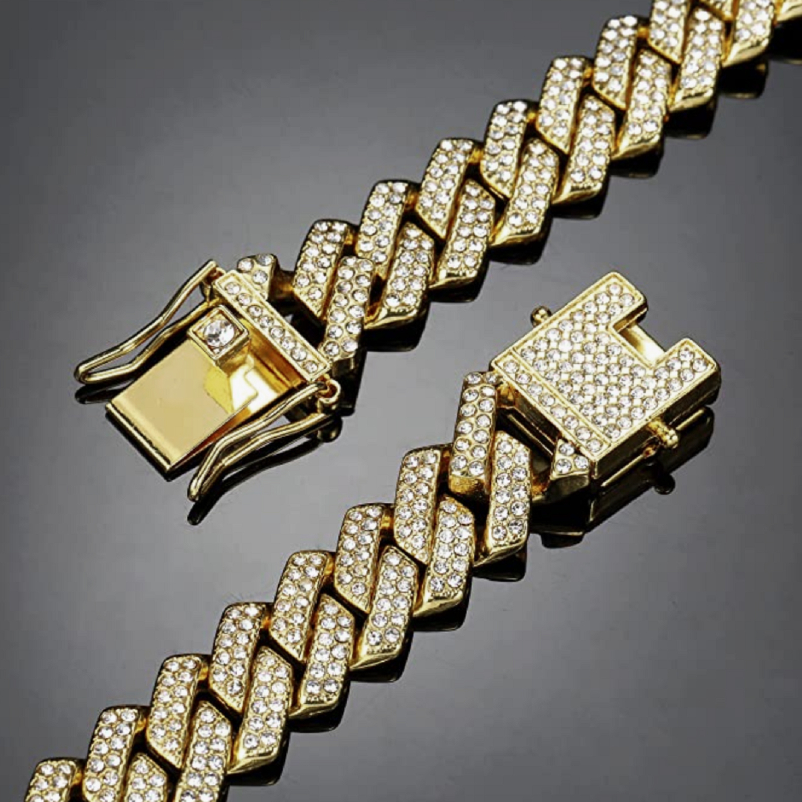 [matériaux de haute qualité] - le collier cubain est fait d'alliage de haute qualité et de strass transparent, durable, sans plomb et sans nickel, sain et sûr. Très brillant. Design: tout strass Collier Chaîne cubaine.
