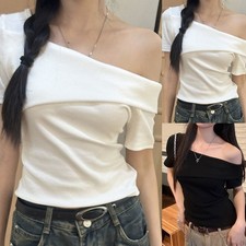 T-shirt décontracté vintage femme épaules dénudées manches courtes à porte